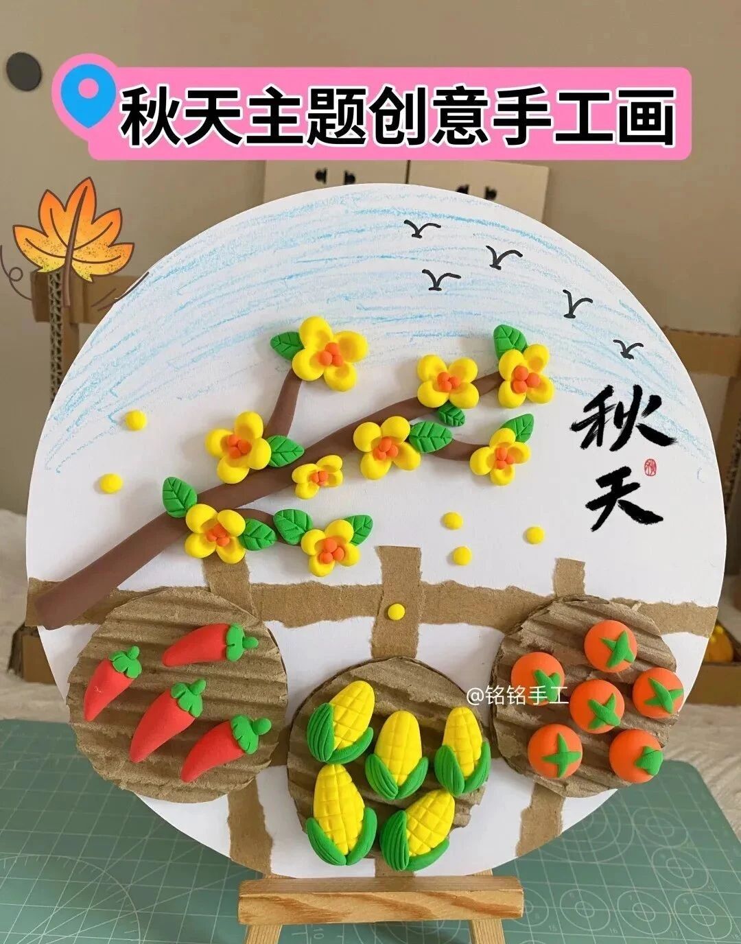 秋天主题的创意手工画来啦~适合幼儿园小朋友,简单又好看,一起来试试看吧~