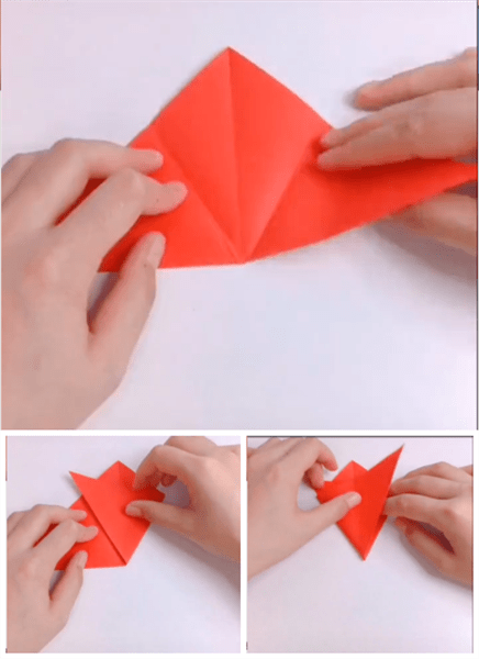 沿着中线将上一步骤中折叠好的图形再次对折;
