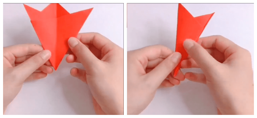 按照下图折痕依次对叠折起三角形的两个角;