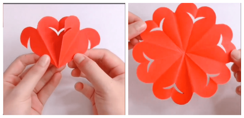 最后慢慢打开就可以得到一个漂亮又经典的小窗花啦~;