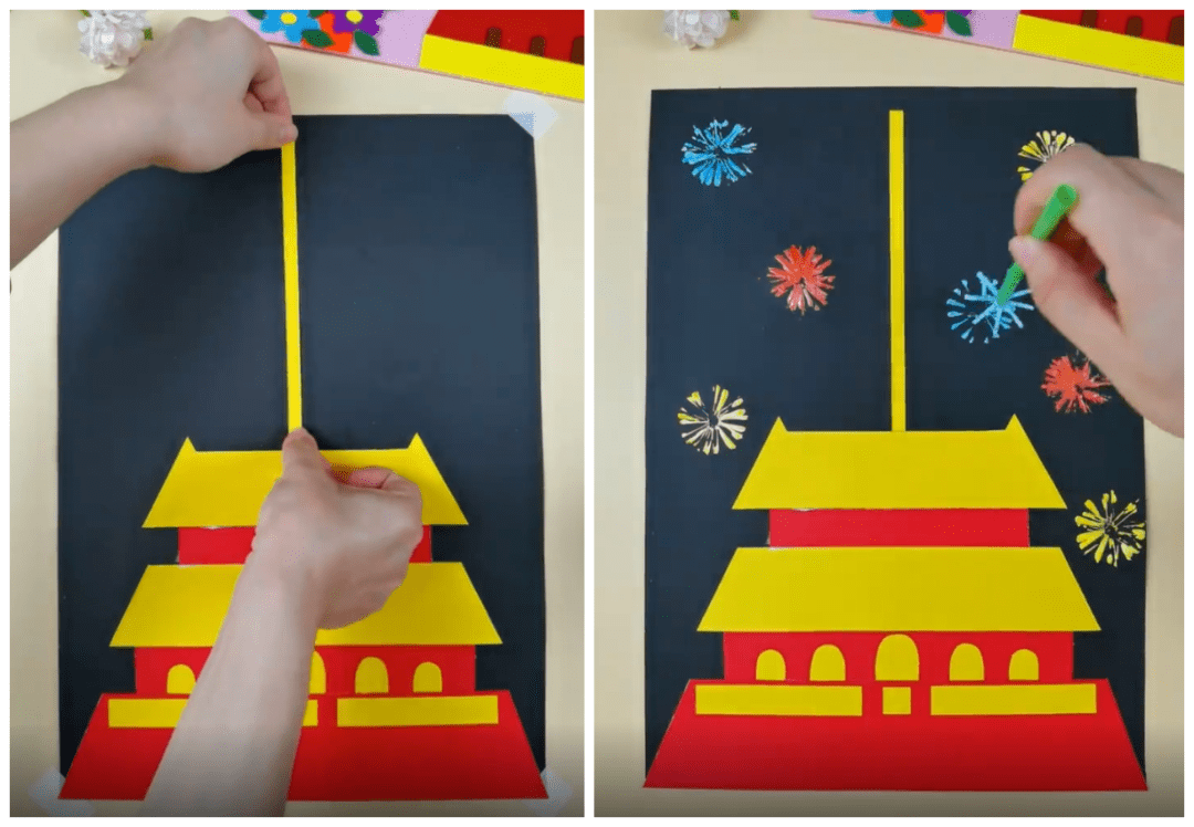 孩子们心中的天安门是怎样的?给他们一张图片,然后让孩子们尽情创作吧~