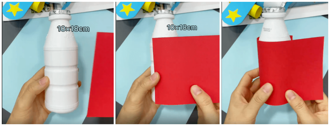 ● 将红色卡纸如下图裹在饮料瓶外侧一圈: