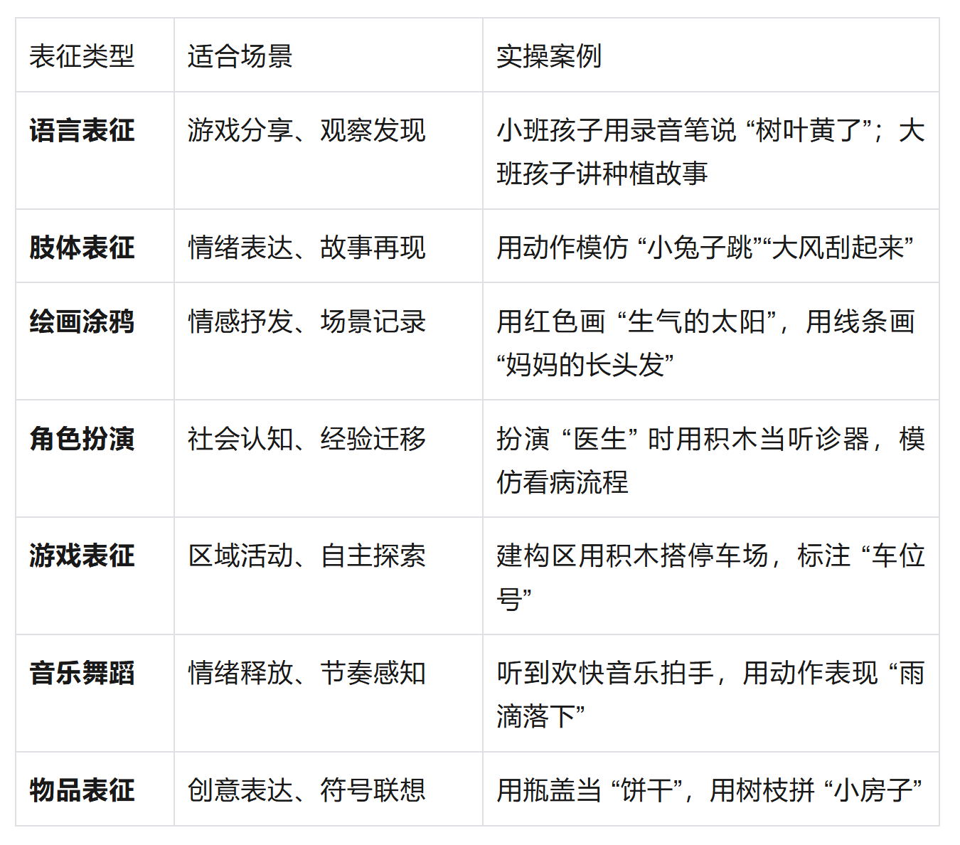 “每次游戏后都要画,孩子都怕了”,这是很多老师的共鸣。其实表征有 7 种常见形式,可根据孩子特点灵活选择: